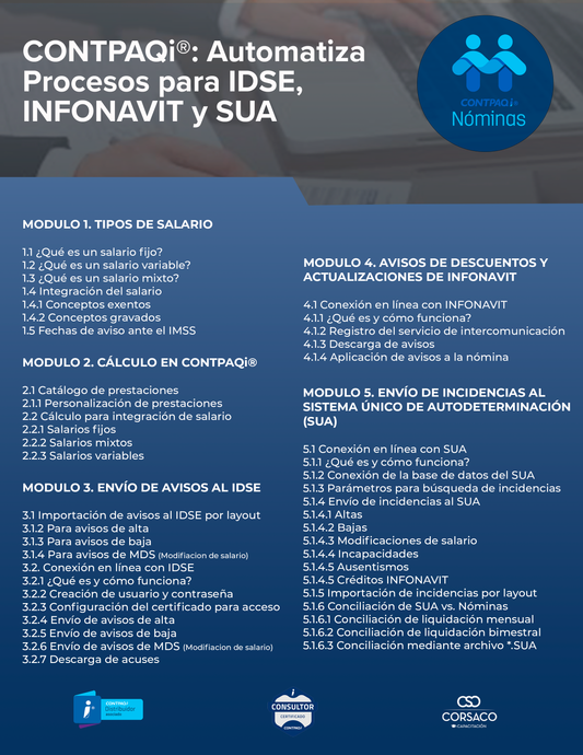 Curso CONTPAQi® Nóminas – Automatización de Procesos para IDSE, INFONAVIT y SUA